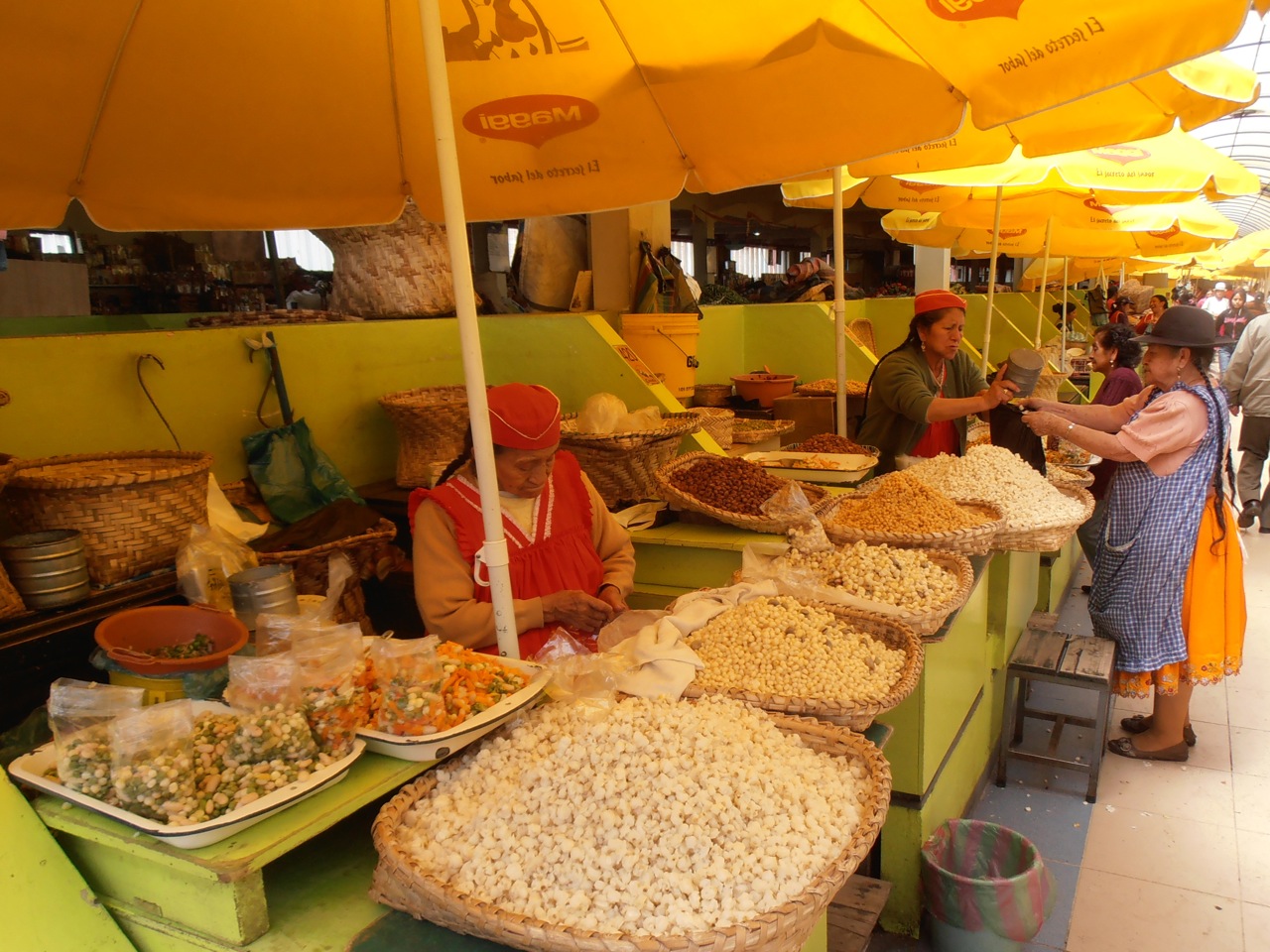 There are piles of beans and grains of all kinds that are already cooked and ready to take home for supper.